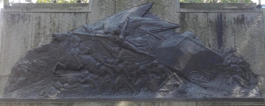 Son monument est inauguré en 1935 et représente un véritable « monument-épopée » de granit et de bronze. Un soldat domine la représentation de l’assaut et porte un costume antique en tenant dans ses mains son glaive et son bouclier. Tous les militaires sont représentés ici : les cavaliers, les aumôniers et les fantassins, ainsi que leurs armes, telles que des chars, des grenades et des fusils. Une allégorie de la victoire est représentée, elle porte un bonnet phrygien et guide les soldats. Ce monument est très patriotique et représente le sacrifice des soldats et leur gloire avec une grande précision.