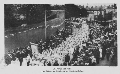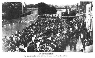 s en plus fréquentées comme celle de Notre-Dame-du-Port qui se déroule aux alentours du 10 mai. Lors de cette procession, différents évêques sont présents et prononcent leurs sermons. Pour la procession de 1915, l'évêque de Limoges et l'évêque de Clermont demandent à Dieu de bénir les soldats. Dans son sermon, l'évêque de Limoges évoque Jeanne d'Arc comme la « martyre de la patrie », la « Vierge de la Lorraine » ; il fait un parallèle entre le sacrifice de Jeanne d'Arc et celui des poilus pour sauver la France. Le chanoine Colin de Metz exerce en partie sur le territoire allemand et doit être soumis à son autorité mais il fait le choix de s'allier à la France. Dans son discours, il rappelle le sacrifice des hommes morts pour la France et pour l'Alsace. En effet, près de 8000 Alsaciens ou Lorrains combattent sous le drapeau français alors qu'ils ont été mobilisés par l'armée allemande. Il reprend également dans son sermon les mots d'Urbain II lors de son appel pour la croisade. Pour le chanoine, la Grande Guerre représente la croisade des catholiques. Son sermon est repris par La Semaine Religieuse mais aussi dans l'Avenir.